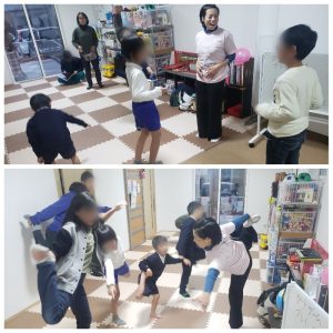 ここでもいろんな動きやポーズを次々と考えていく柔らか頭の子どもたちです❗