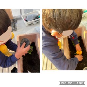 すでに咲いてるパンジーは色がわかるけど、咲いていないお花は何が咲くかのお楽しみ!