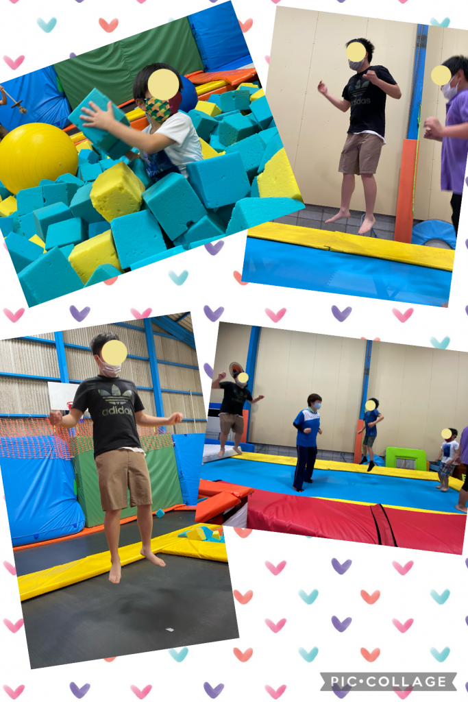 August 9, 2021 9:41 am | 今日のなないろの家、休日の活動、課外活動トランポリン,夏休み,ジャンプ,本日は!!ずっーと楽しみにしていたトランポリンに行ってきましたー🤗🌈 入室してすぐにジャーンプ‼︎‼︎ 終始笑顔の子供達☺️楽しそうでした❤️ 先生達も子供達と一緒に楽しみました🙃💎 また行きたいね☺️ シェア