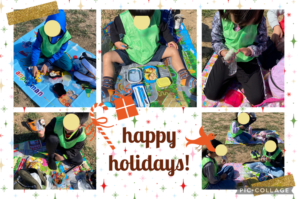 青空の下で、みんなでわいわいおいしくお弁当を食べました😋🍙