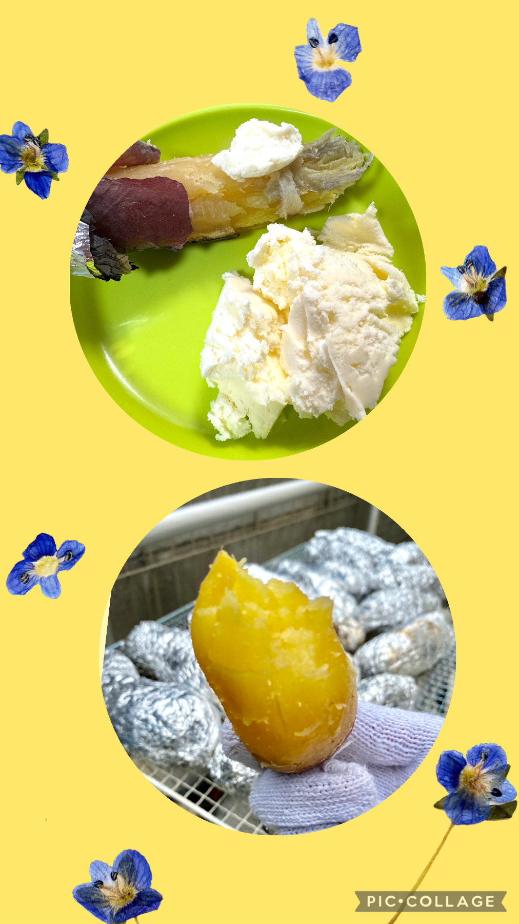 焼き上がったお芋はねっとりと甘くてとっても美味しかったです☺️熱々のお芋の上にバニラアイスを乗せると格別でした🍠👍