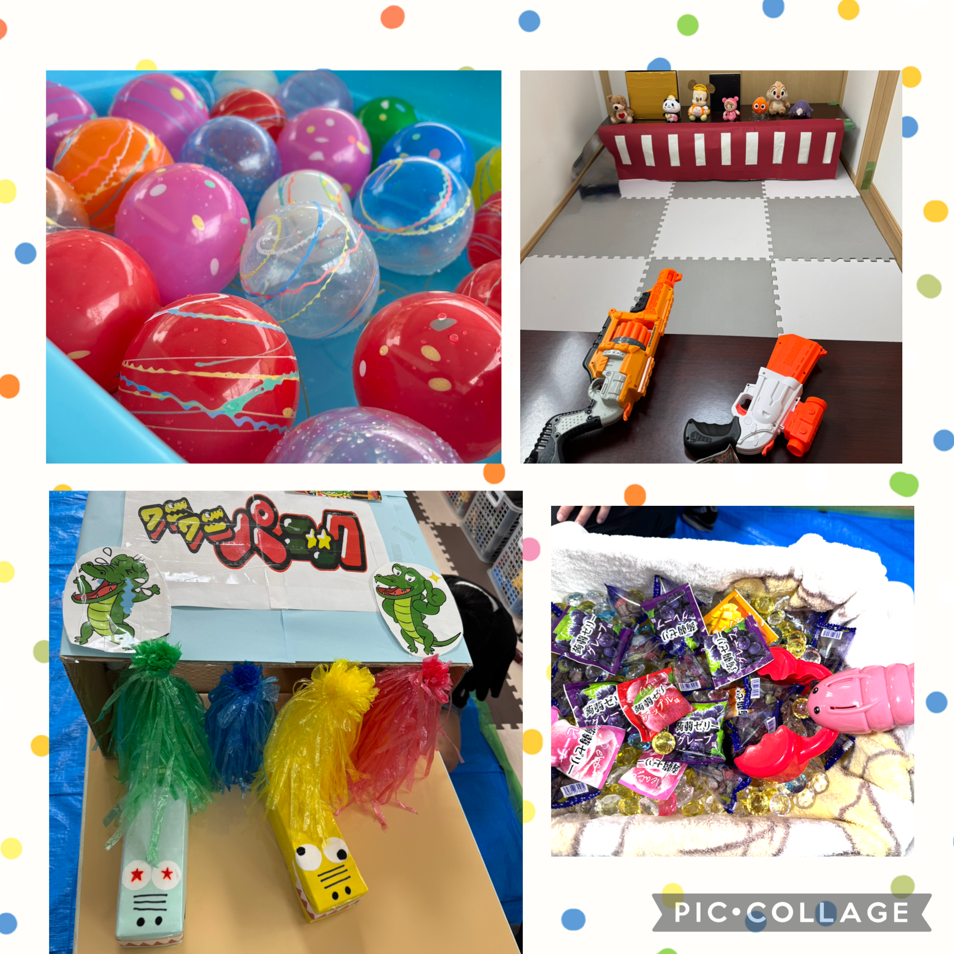 ヨーヨー釣り、ナーフ、お菓子すくいなどのブースを準備し、来所するとすぐにスケジュールを確認して活動開始👍✨
