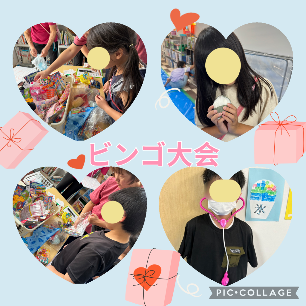 ヨーヨーづくりでは、一つひとつの工程を丁寧に確認しながら真剣に取り組み、完成後には「店番をしたい!」と自ら申し出る頼もしい姿も見られました。小さな子への優しい声かけや、相手に合わせた接し方が自然にできており、日々の中で育まれてきた社会性を感じます。遊びの中では「もう一回やりたい」と素直に気持ちを伝えたり、コミュニケーション力の成長も垣間見えました。最後のビンゴ大会では、数字が出るたびに歓声があがり、笑顔と活気に包まれたひとときとなりました🏮💠