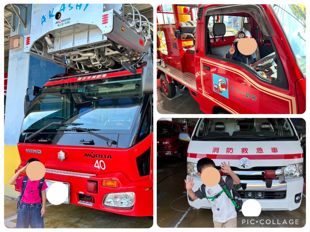 September 15, 2025 6:52 pm | 今日のなないろの家、児童発達支援、課外活動児童発達支援児童発達支援では、消防署に見学にいきました。 大きなハシゴ車や救急車にみんな大喜び。 消防隊員になりきって楽しみました。 消火体験や、地震体験も行いました。 シェア