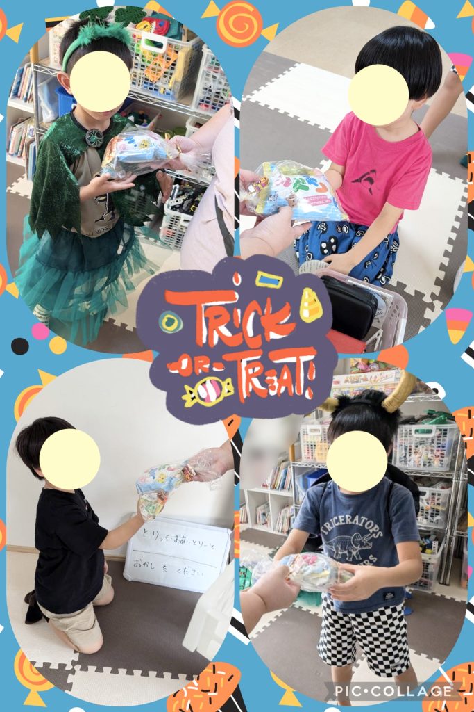 「トリック・オア・トリート!」や「お菓子ちょうだい!」と元気いっぱいに言いながら、お菓子の詰め合わせを受け取っていました🍬🍭