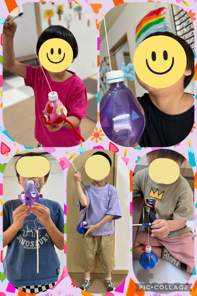 制作活動では、風船を使っておばけ提灯づくりを行いました👻手順書を見ながら一つずつ丁寧に工程を進め、オリジナル提灯の完成です👏ハロウィンの仮装パーティーでは、好きな衣装を選び、鏡を見ながらポーズを決めたり、見せ合いっこして楽しみました🧙♀️