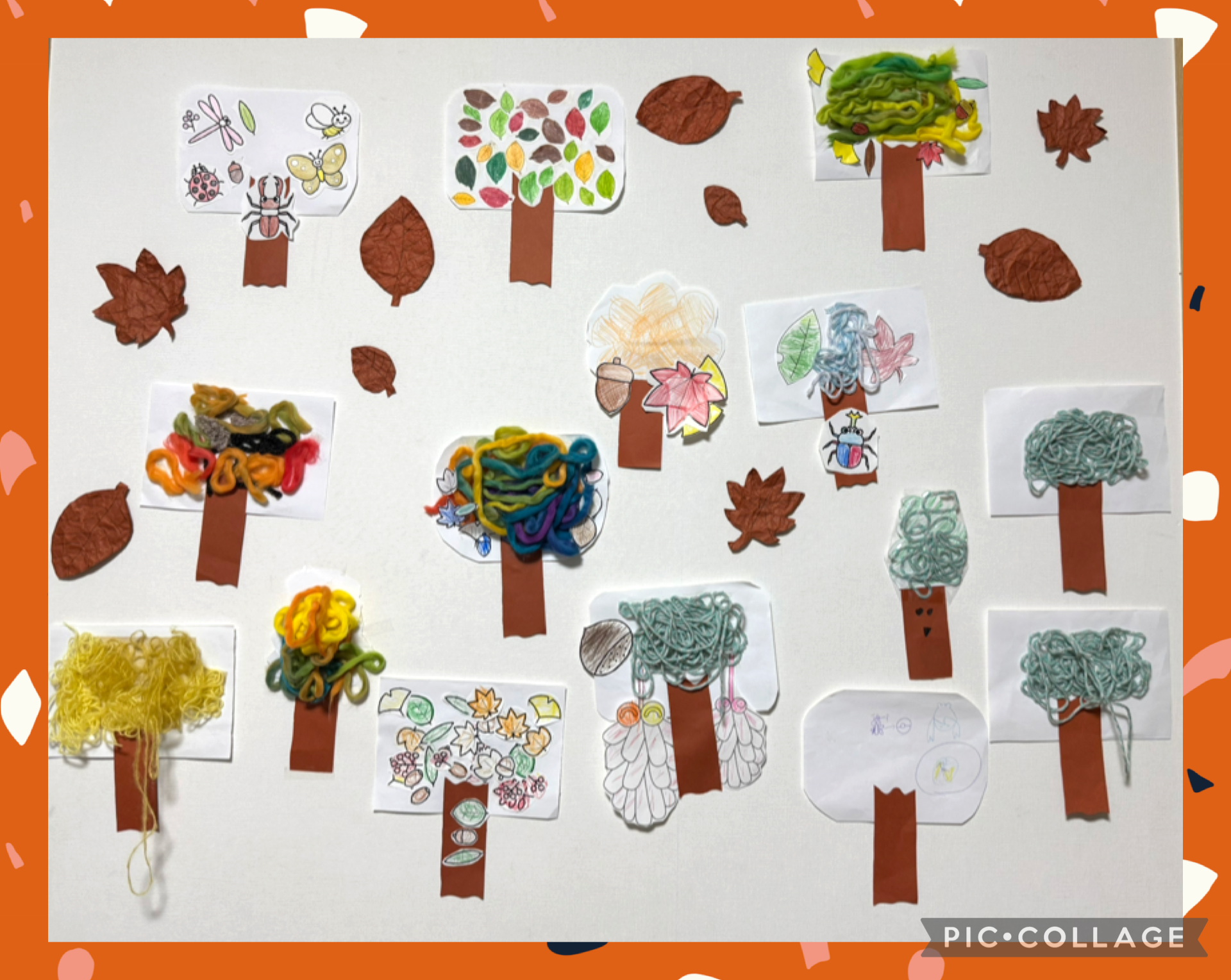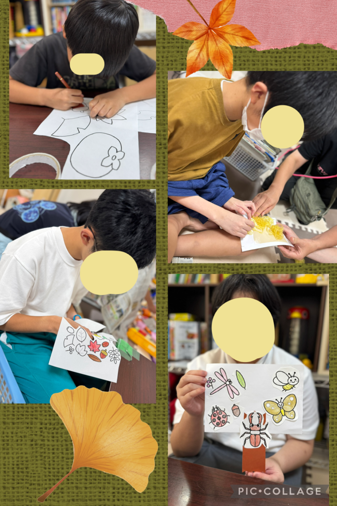 October 12, 2025 1:57 am | 今週のなないろ、製作秋の壁面制作今年の秋の制作は1本の木の上に、好きな葉や昆虫を貼り付けました🐝色鉛筆を使って秋をイメージしたデザインを描いたり、毛糸を使うなど様々な工夫が見られました🍁🍂どれも素敵な作品の完成です‼️ シェア
